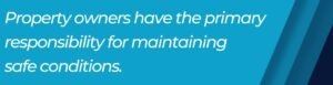 Property owners have the primary responsibility for maintaining safe conditions on their premises and can be held liable when dangerous conditions cause visitor injuries. This includes residential property owners, commercial building owners, and those who own vacant lots or undeveloped land that may attract trespassers.